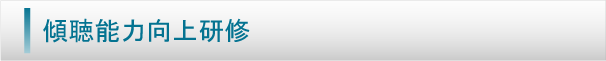 最も基礎的で、重要な、相手の考え、感情を根本から正確に理解する力を伸ばす研修です。・傾聴力とは ・傾聴方法について ・やり方によってこんなに変わる ・ドンキク(どんどん聴く)大会 他 |