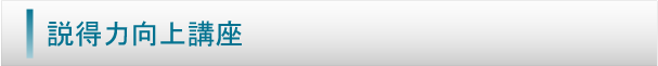 | 状況や相手の考え、感情を理解した上で、筋道の通った粘り強い説得ができるようになる研修。・説得力とは ・説得の要件とポイント〜ケーススタディ〜 ・セッタイタイム(説得大会) 他 | 全社員 | 35名 | 3時間 |